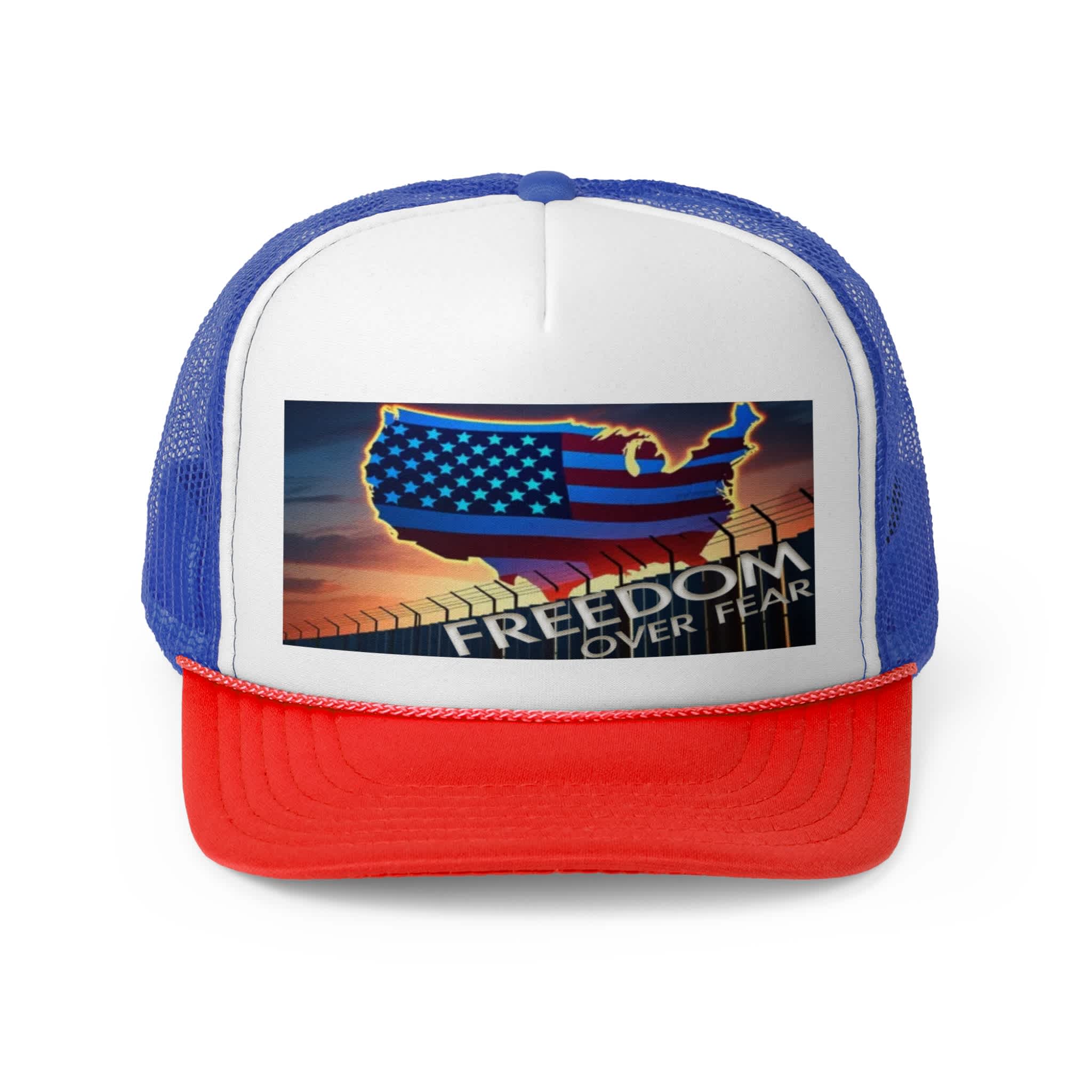 The Freedom Over Fear Trucker Hat is more than an accessory—it’s a statement of strength.