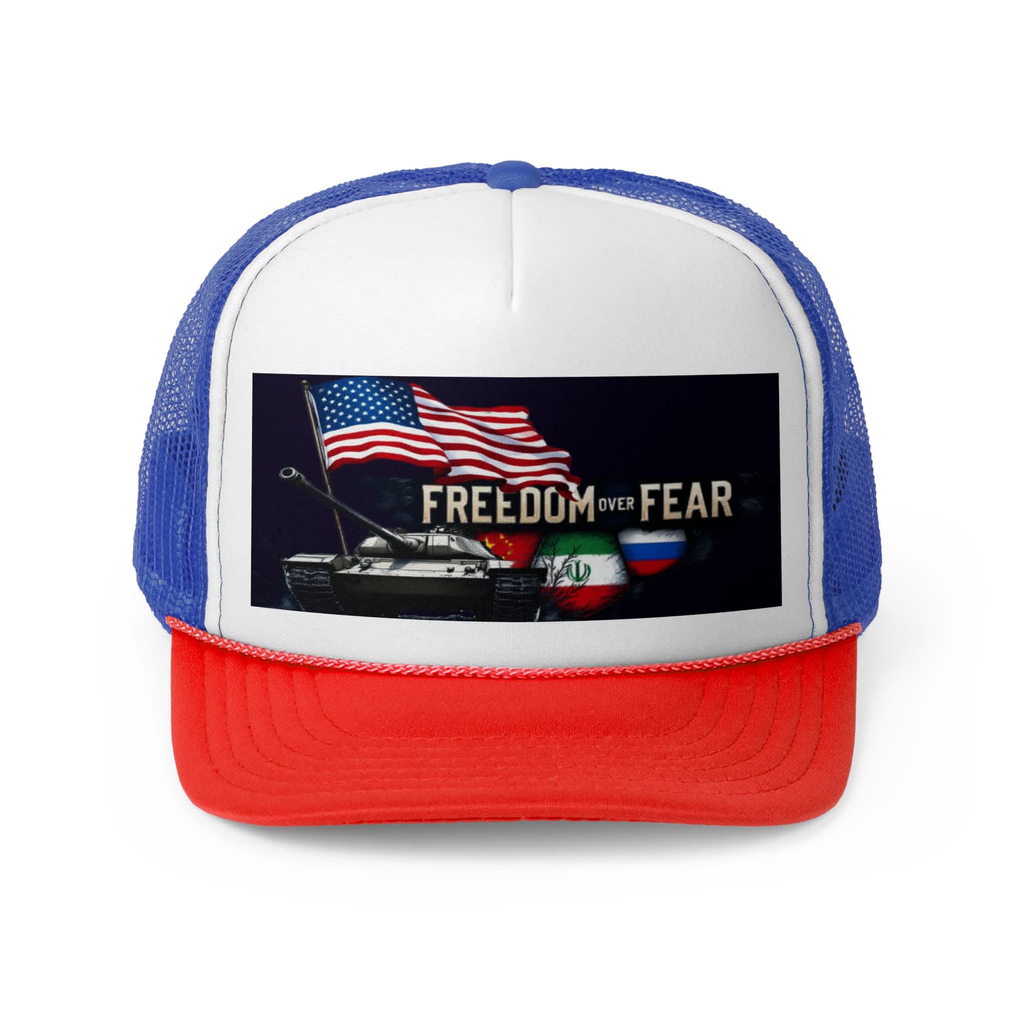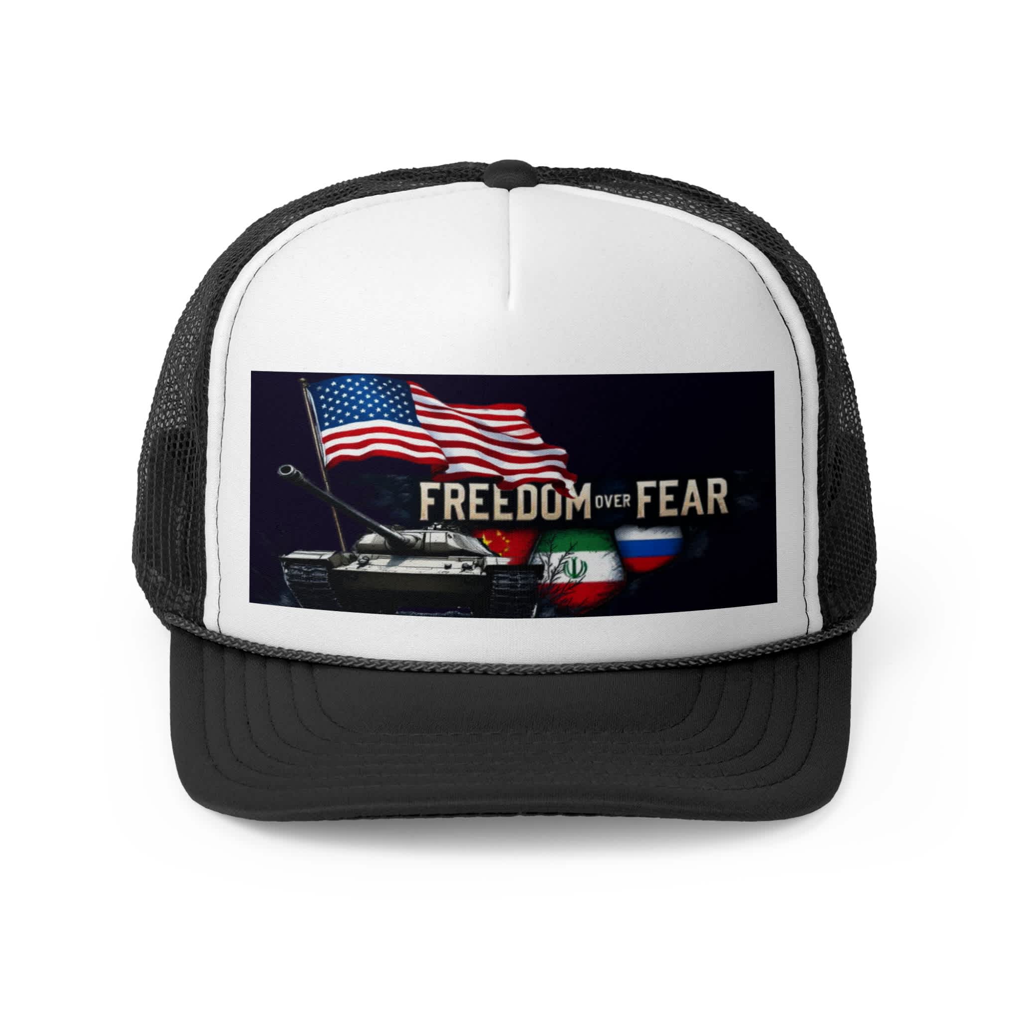 The Freedom Over Fear Trucker Hat is more than an accessory—it’s a statement of strength.